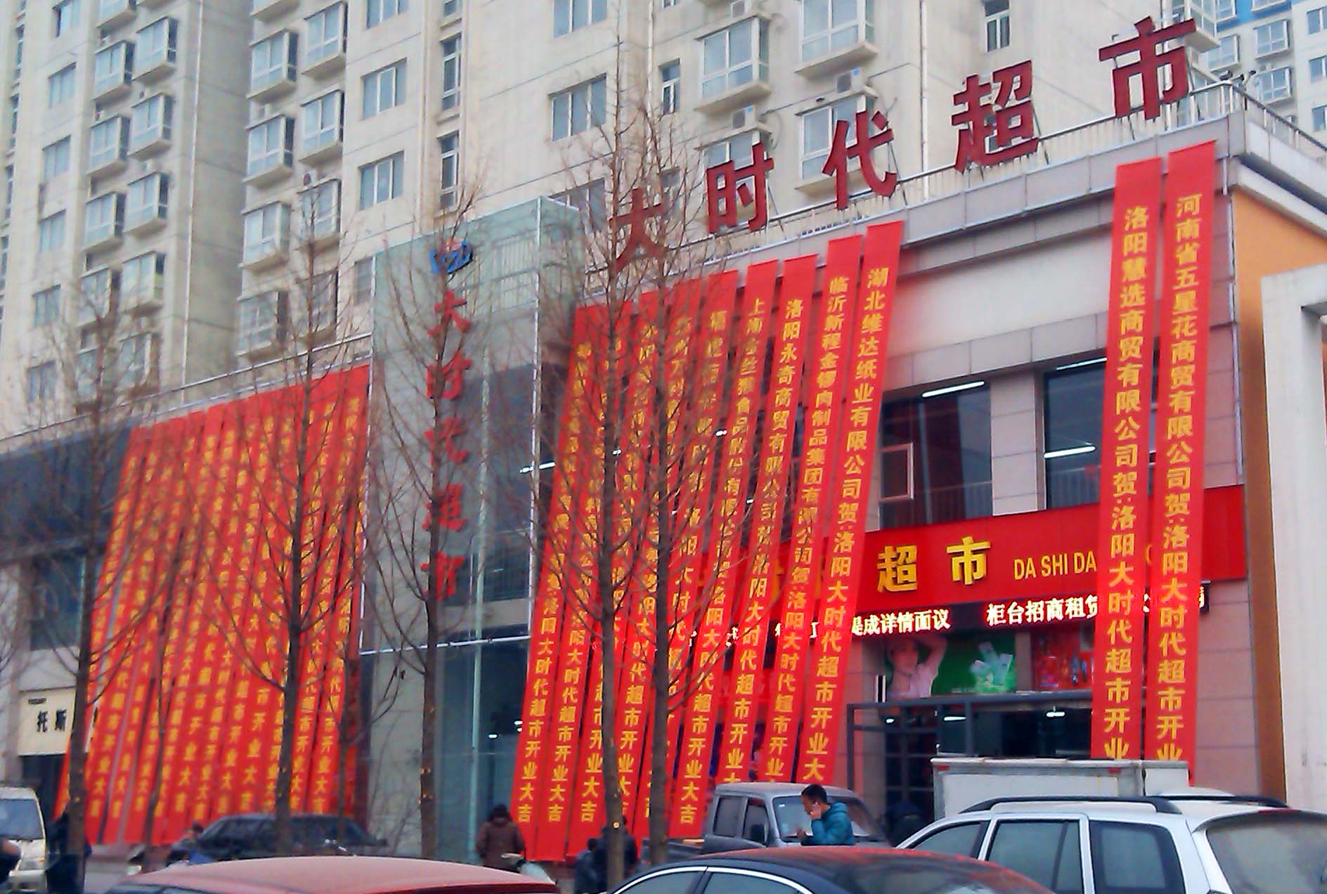 大时代超市开业条幅布置